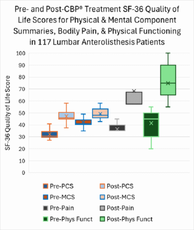 The study, titled “Improvement in physical and mental quality of life following reduction of lumbar spondylolisthesis using Chiropractic BioPhysics® corrective spinal rehabilitation,” reports outcomes from a consecutive case series of 117 patients diagnosed with Grade I–III lumbar anterolisthesis (spondylolisthesis). The findings demonstrate that a structured, non-surgical CBP® corrective spinal rehabilitation program produced statistically significant reductions in vertebral translation along with clinically meaningful improvements in both physical and mental quality of life.