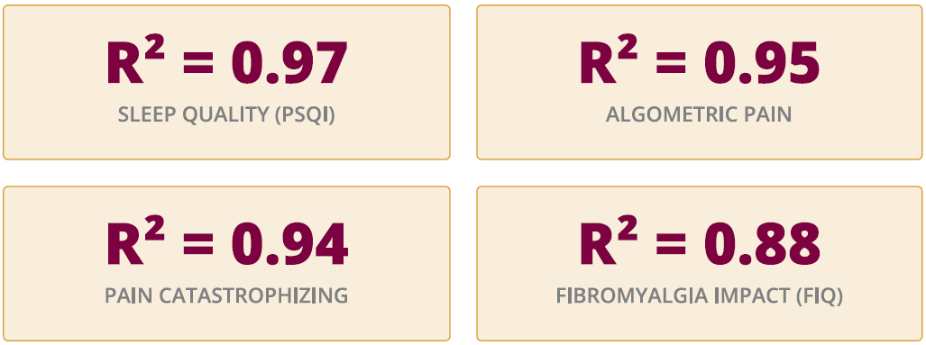 These R2 values indicate that up to 97% of the variance in a patient’s sleep quality and 95% of their pain sensitivity can be explained by 3D spinal posture metrics.